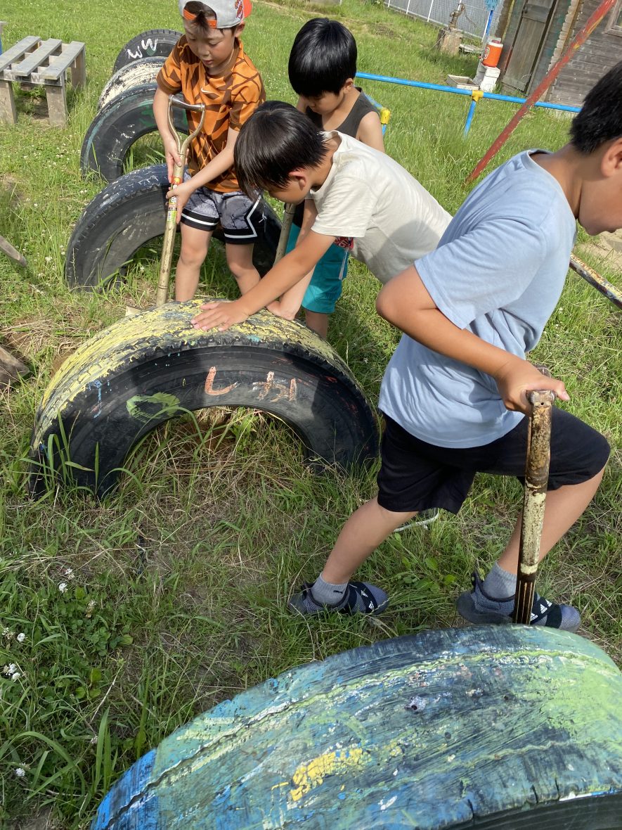 子どもも大人もワクワクしながら汗をたらたら流して作業をしていました。