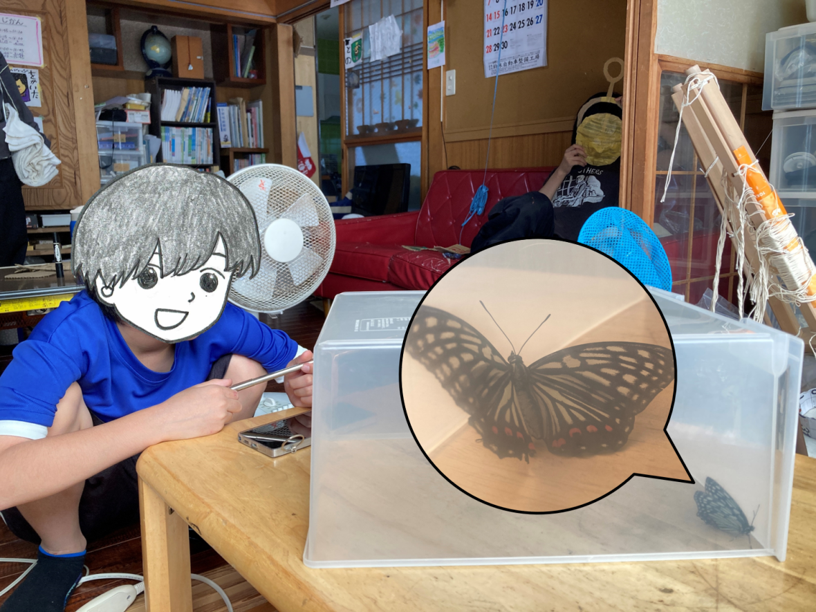 みんなで捕まえ調べてみると、『アカボシゴマダラ』という蝶でした。